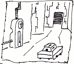 Down the White Corridor in your little golf kart. It suddenly overturns, pinning you under its weight, but wait, the fun balloons burst. The entire cockpit is rapidly filling with water. You remember your training and refuse to breathe it, taking in gulps of air instead, but the air is disappearing because the cockpit is filling with water. The flare gun in your pocket is now damp and useless. The book of matches becomes damp and useless. The revolver is soaked with water (uesless.) Your vintage magazines have been ruined. Your hair and skin have become damp and useless.