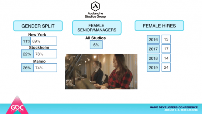 “Change is a process,” she said. Using her company as an example, across Avalanche’s global studios, the company is working toward a more even split, but men still dominate: