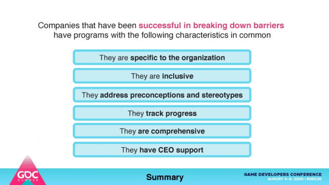 The game industry is notoriously male-centric, and Setian’s in-depth talk offered practical ways organizations can counter many of the biases and obstacles leveled against women who are trying to climb the ranks within a company.